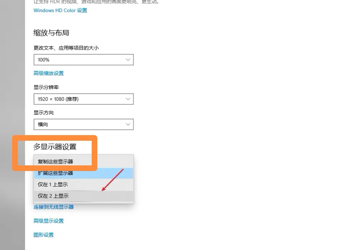 下滑点击多显示器设置,选择复制这些显示器。
