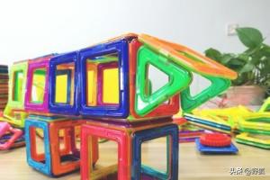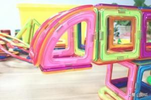 教大家使用磁性积木玩具磁力片搭建三角龙造型。