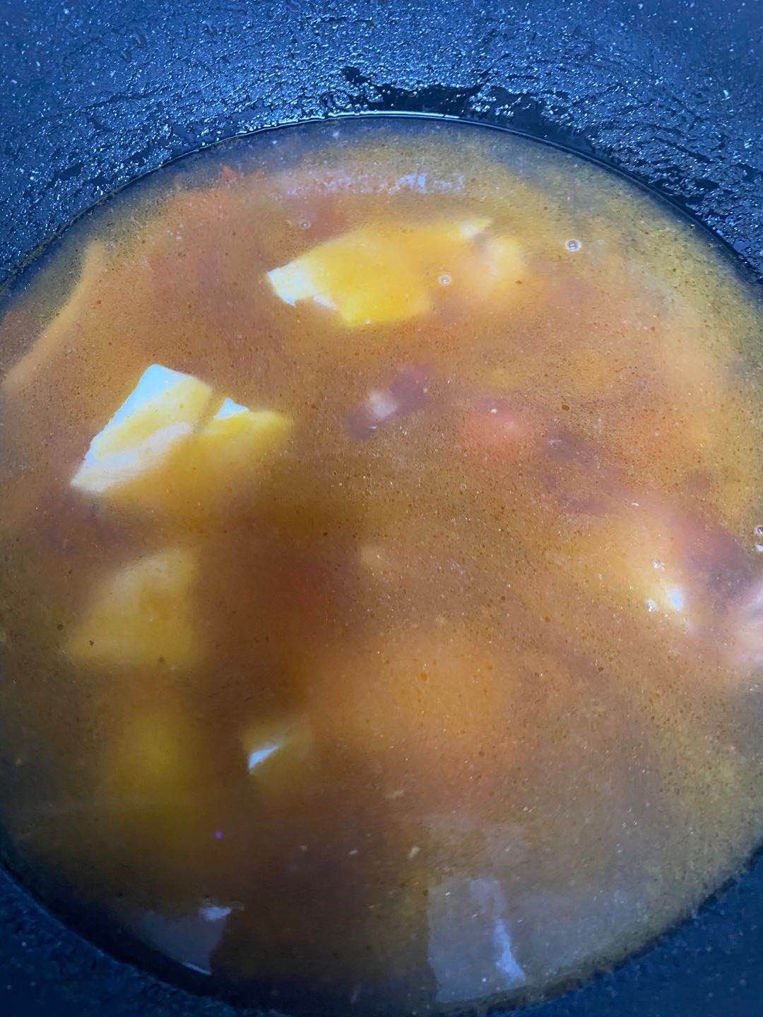 7、一道美味的家庭版西红柿鸡蛋肉丝豆腐汤就完成了,然后就可以出锅了。