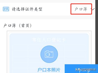 6、之后,如果有身份证的话,就选择拍摄身份证,如果是小孩就选择拍摄户口本,如图,点击中间的摄像头拍照。