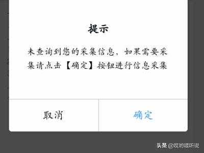 5、如果你已经办理过社保卡,就会自动弹出你的社保信息,如果没有办理过,就会提示“没有查询到你的采集信息”点击确定,就可以继续采集了,如图。