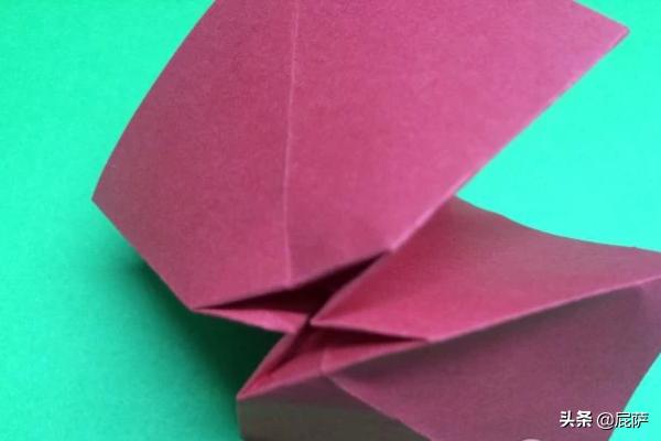 12、上一步剪开的两角根据下图方法折。