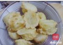 6.将沾有淀粉的香蕉块均匀的挂上面糊。