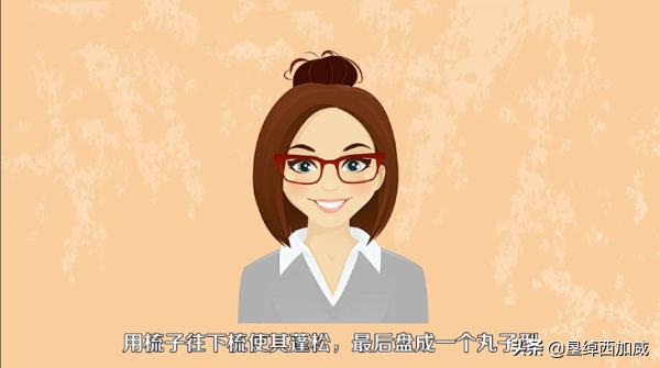 三、用梳子往下梳使其蓬松,最后盘成一个丸子型,如下图所示。