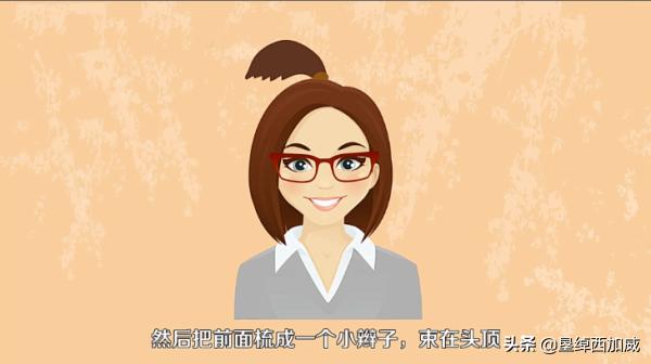二、也可以用卷发器把头发往内扣,然后把前面梳成一个小辫子,束在头顶,如下图所示。