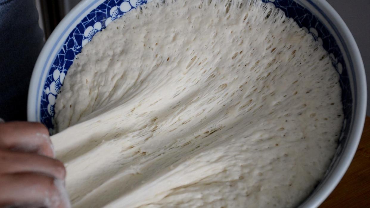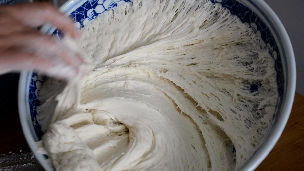 发酵成功的面团翻开以后可以看见很多蜂窝状的气孔,这一点非常重要,这样发面才算发好了。