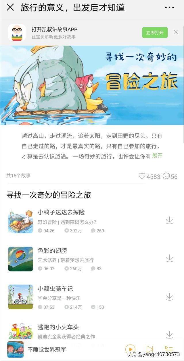 我家孩子小时候是用《凯叔讲故事》微信小程序,这里有许多凯叔讲的免费故事。故事讲的很生动,而且很多是连载的故事,孩子很喜欢。《凯叔讲故事》有微信小程序,也有APP,您可以根据自己的需要选择。
