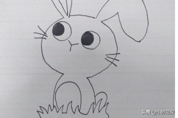 4、然后画出小白兔的身体。如果觉得小孩子画不好兔子的脚,我们可以直接画小草来挡住兔子的脚。