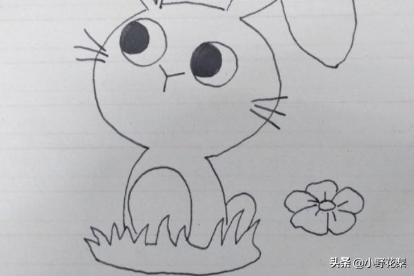 6、在兔子右边画一朵小花,花很简单的花就可以哦。