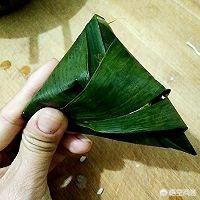 用棉线绳将粽子五花大绑起来,我绑的实在是有点丑哈。但是粽子包出来好不好吃和系的紧不紧很有关系。所以还是尽量多绑几下,绑紧。