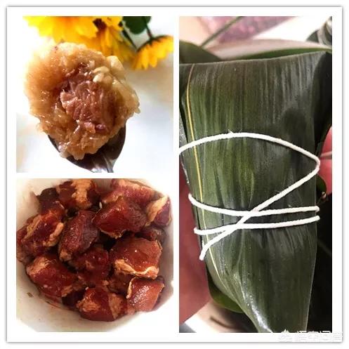 小贴士:猪肉选用瘦一些的五花肉最好,也可以买现成的咸鸭蛋蛋黄一起包入。喜欢糯米口感软一些的,可以适当延长糯米的浸泡时间,喜欢口感硬一些的也可以,洗净后沥干水分加调料即可。如果没包过粽子,建议看一下四角粽的包法视频,个人觉得四角粽简单好包一些。