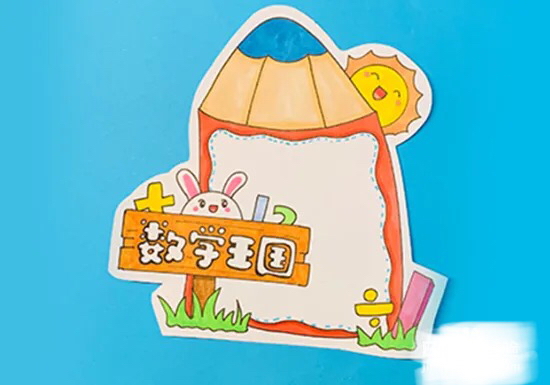木牌涂上棕色,兔子涂粉色,再给数学符号和数字上色,边框的边缘位置加重涂色。
