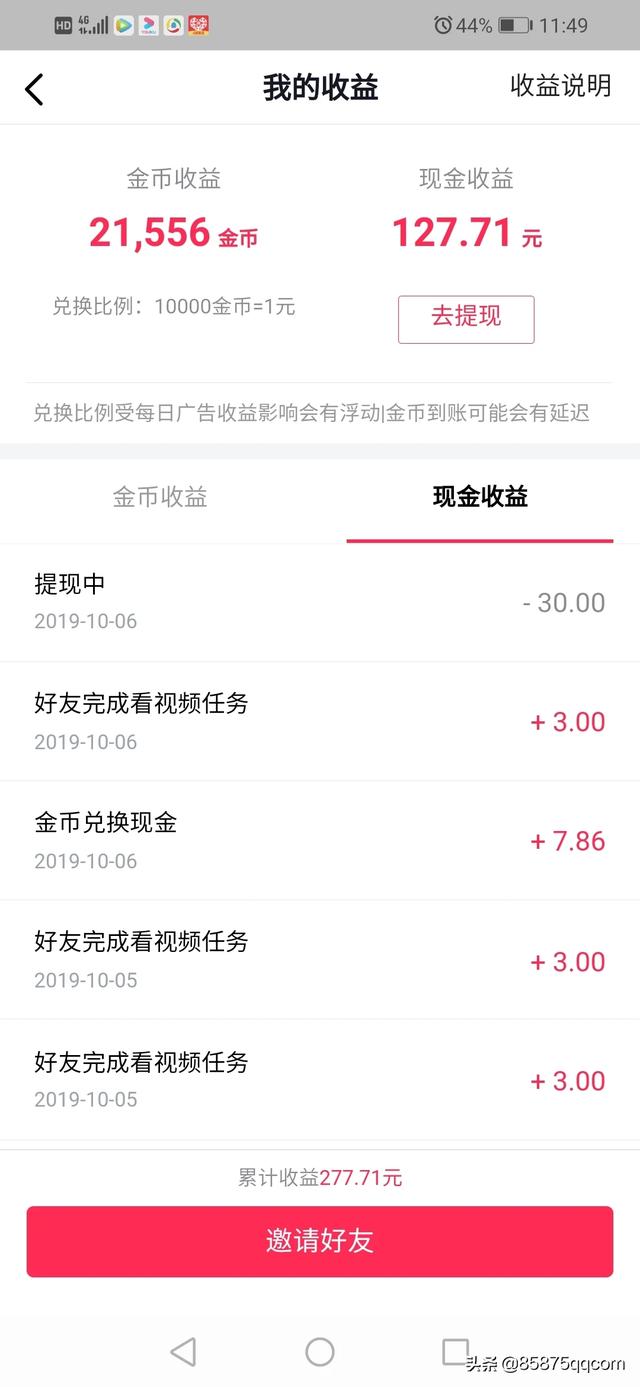 个人感觉看新闻我首选今日头条极速版,看视频我首选抖音极速版。好了写这篇文章的主要目的是怎么赚零花钱,对以邀请10个人为单位,两款APP同时邀请,头条3元,抖音2元即刻到账50元,后续还有头条32元,抖音38元,合计700元在路上往来赶,找你的钱袋子,就看能找到不,为什么这么说呢?有的人用着用着就不用了,所以你的收益就减少了,一直坚持使用700元就是你的啦。这才是邀请10个人收益,100个人,1000个人,好刺激啊,哈哈,大家赶快行动吧!
