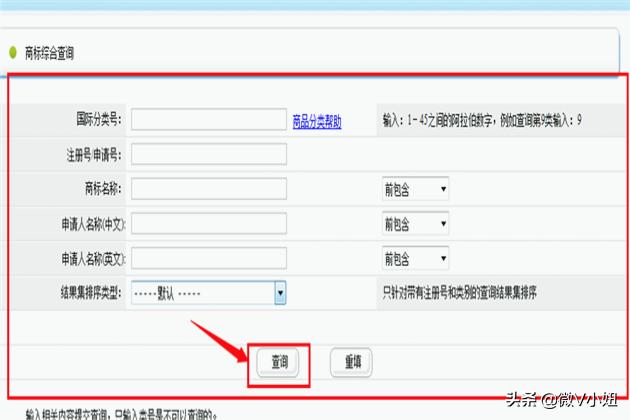 6.商标综合查询选择相应栏目,红色标记为必填;