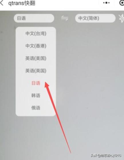 5、在拍照翻译页面,设置好需要翻译的语言,这里选择日语。