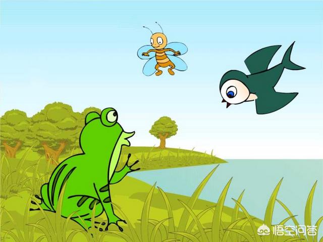 青蛙说:“你考我吧。”燕子说:“上星期一我吃了两只害虫,星期二吃了4只,以后每天比前一天多吃2只害虫,问我一个星期……”“吃了56只害虫”。燕子没说完,青蛙已经说了答案。燕子说:“算得这么快!教教我速算的窍门吧”。青蛙让燕子画7个圈,然后按第一个圈放一只害虫,后面的圈比前一个圈多两只,它们的顺序是1、3、5、7、9、11、13,加起来是49,青蛙在每一个圈外各放一只害虫,再用49+7=56。燕子赞青蛙真聪明。