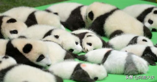 熊猫睡觉时,腹部朝天,有时,它还用前爪轻轻地拍着肚子,也有时它会翻一个身,用前爪揉揉惺忪的眼睛,然后伸个懒腰。好像人的样子似的。