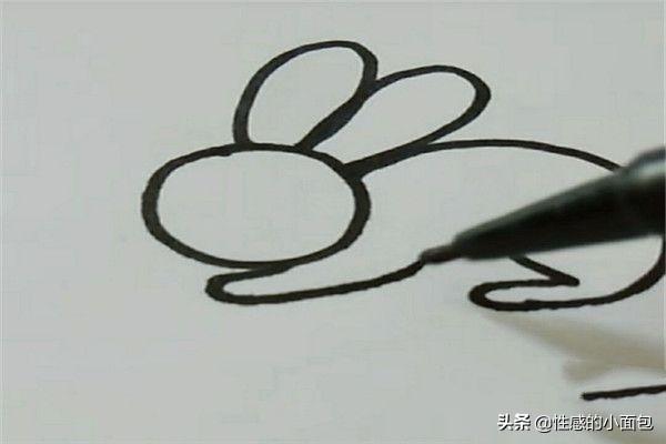 第七,在兔子身体的后边给兔子画一个尾巴,同时再给兔子画一只眼睛,如图: