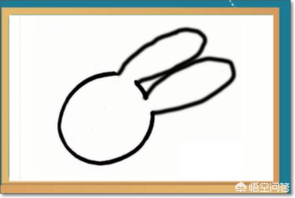 2、然后画出竖着的两只耳朵,和圆圆的兔头。