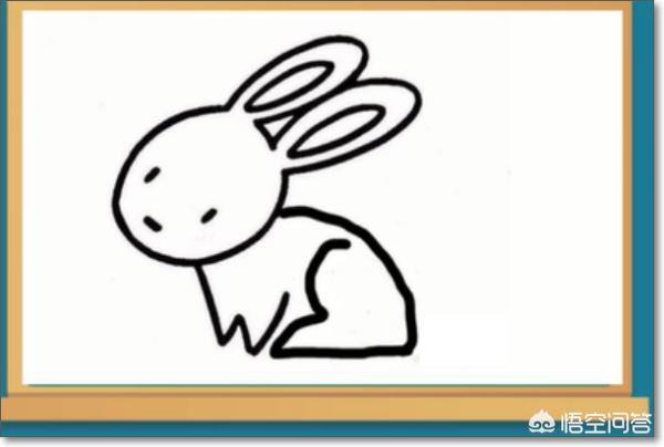 4、然后画出小白兔的身体。如果觉得小孩子画不好兔子的脚,我们可以直接画小草来挡住兔子的脚。
