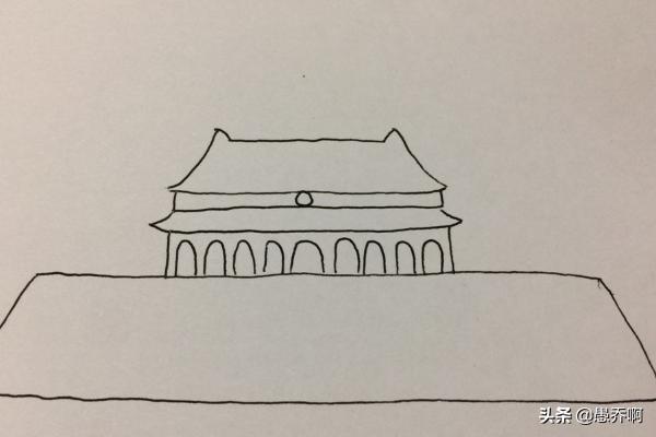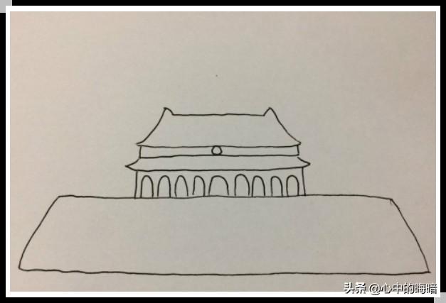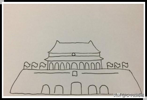 3、然后画出下面一层的柱子,接下来画出天安门上宽大气派的城墙。