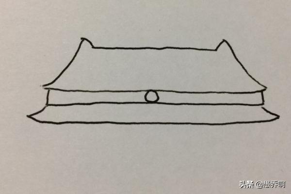 2、然后画出城楼上的国徽,接下来再画出下面一层房檐。