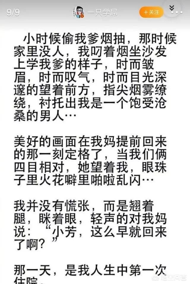 13-记得上初中,中午午休的时候,我和一哥们躲在厕所里抽烟。听见外面有人来,哥们猛吸一口,就把烟甩了。进来的是教导主任,他看见我们靠在窗边,便问:你们在干嘛呢?我慌了,转头看见哥们,他的表情我至今难忘。